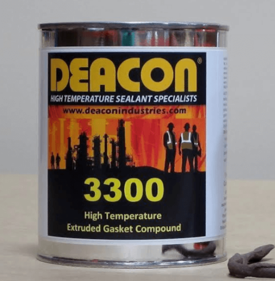 Deacon 3300 (600°F to 1600°F) – This high temperature extruded gasket compound is ideal for extreme temperatures. It maintains its pliability and can be used to fill voids, pits, and steam cuts on flanges. It is a heat curing, compressible, joint sealant that conforms to flange face and gap irregularities better than standard die cut gaskets